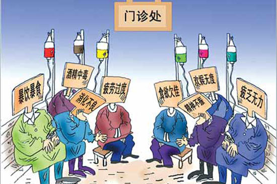 假日綜合征反映在身體上的疾病,主要有酒精中毒、胰腺炎、消化不良、膽囊炎、冠心病、高血壓等等。四川省人民醫(yī)院營養(yǎng)科主任楊詠濤說,這些都是跟營養(yǎng)代謝息息相關(guān)的。根據(jù)以往的經(jīng)驗(yàn),節(jié)后,門診上出現(xiàn)這類患者的現(xiàn)象十分常見。
